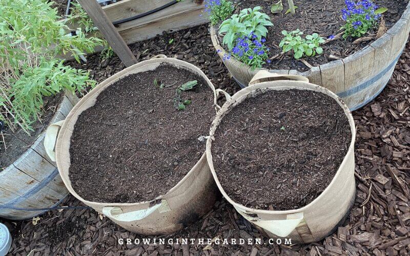 Look for bagged potting soil that has a combination of these ingredients, or make your own. I use the Growing in the Garden Raised Bed mix from Arizona Worm Farm in my grow bags and raised beds. This blog post details the best soil for raised beds, which I use in grow bag gardening.