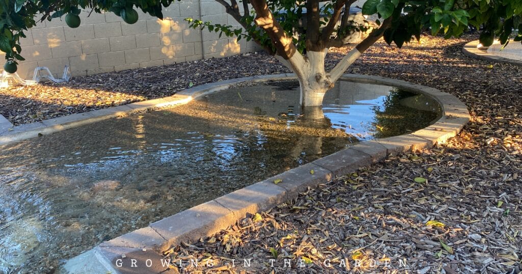 Larry cleared the use of this method for his property with the Roosevelt Water Conservation District. Check with local authorities to ensure you comply with local laws or water regulations.