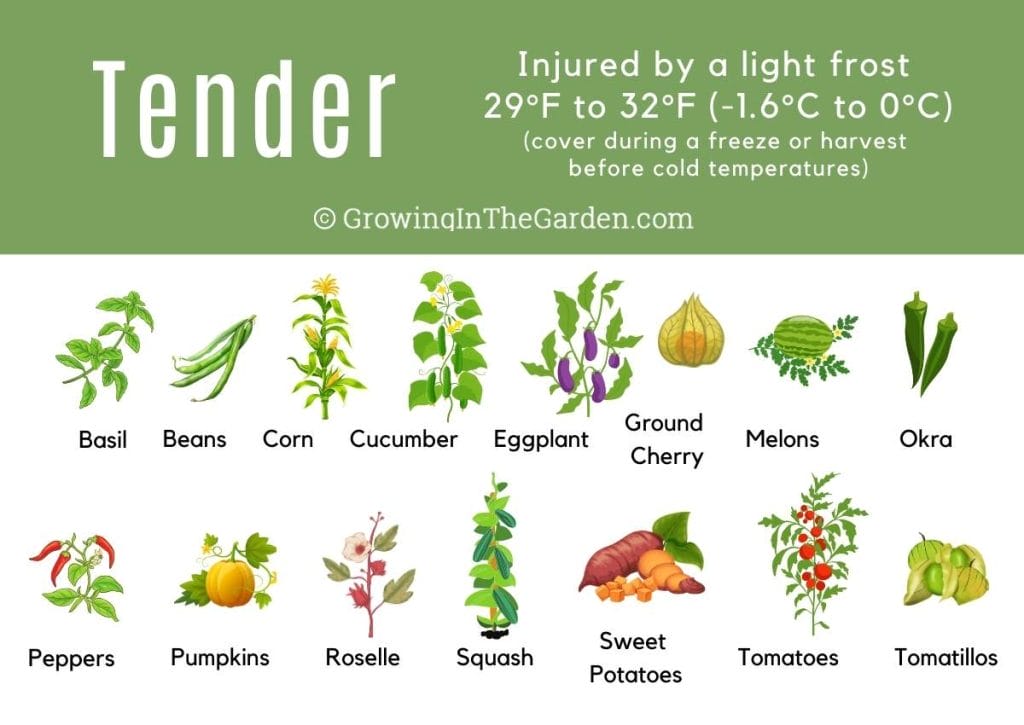 - Frost Tender Vegetables: Killed or damaged by a light freeze