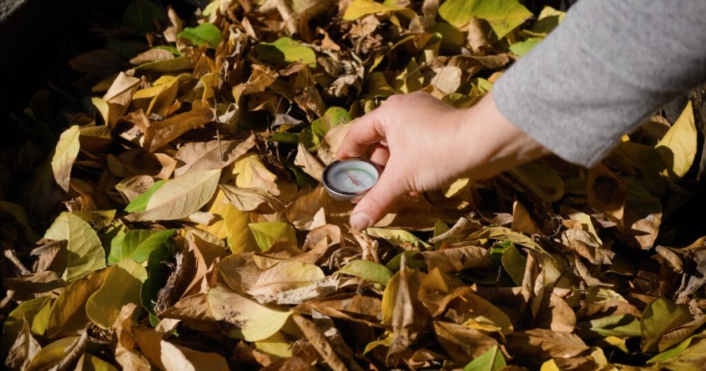 As decomposition starts, the pile begins to heat up. This is where the thermometer comes in handy. You don’t need to do much as long as your compost is nice and hot (110-160℉ / 43-71°C ). Once it cools (below 100℉/37°C), go to the next step.