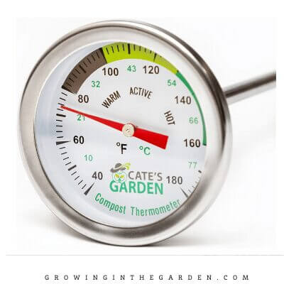 - Compost Thermometer – Monitoring the temperature helps you understand what is happening inside the bins. I’ve had this one since 2015, and it works great.