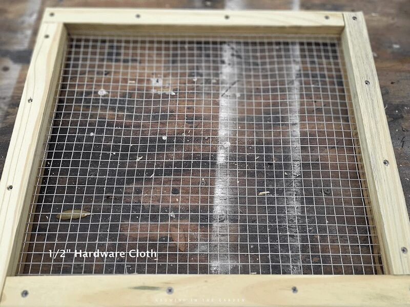 If desired, use a soil sifter to remove any large pieces from your completed compost. Toss the large pieces back into the compost pile to finish breaking down.