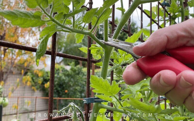 - Prune suckers out of tomato plants.