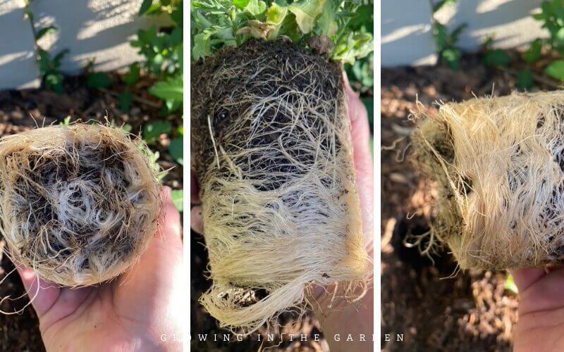 - If the roots won’t loosen, spray the soil away with water first and then uncoil the roots.