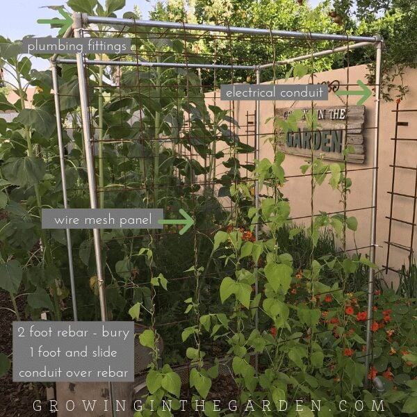 These trellises are an adaptation from Mel of Square Foot Gardening. It is simple to build the size you need.