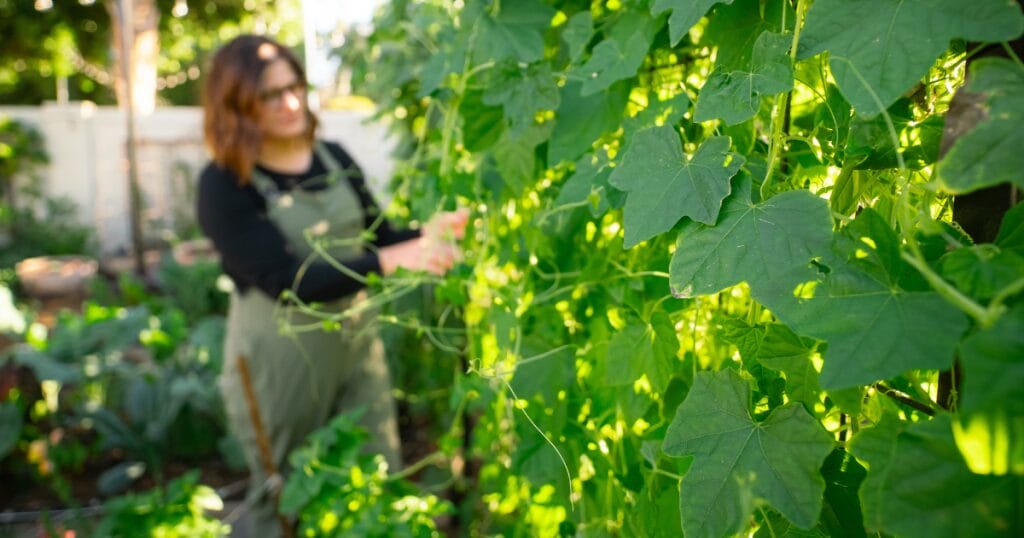 Although I’m growing nearly 40 different types of fruit trees, I’m not including fruit trees and most herbs in this post. I recently posted 10 Perennial Herbs for Hot Climates, and I’ll share more about creating a food forest with fruit trees in an upcoming post!